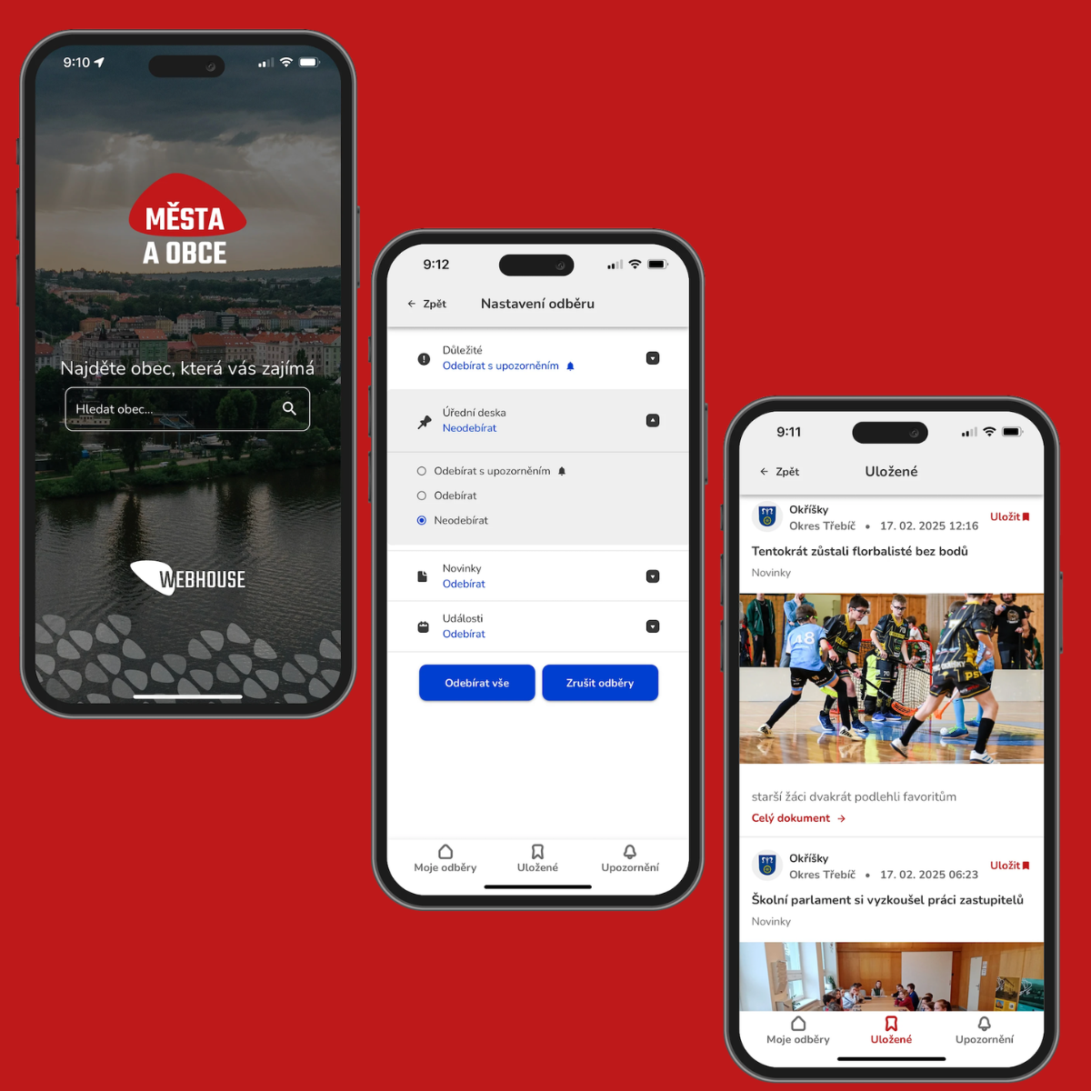 WEBHOUSE, s.r.o. spravoval rozsáhlé portfolio webů, ale chyběl nástroj pro přímý mobilní kontakt. Výzvou bylo postavit aplikaci, která efektivně přenese data z úředních desek přímo do kapes občanů.